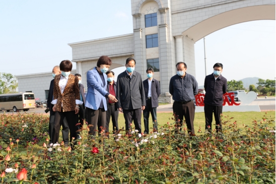 在雨母校区,黄兰香一行参观了玫瑰园,对花园式校园优美的育人环境给予了高度赞扬。