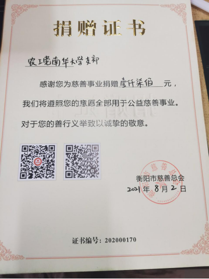 2021年7月17日以来,河南省遭遇了极端暴风雨天气,暴雨引发的洪涝灾害和次生灾害造成郑州市等多个地区上千万人受灾;同时新冠肺炎疫情在河南省多地开始蔓延。一方有难八方支援,为援助灾区人民克服洪灾、扫除新冠病毒,在中国农工民主党衡阳市委会的倡议下,各个农工党党支部进行捐款赈灾活动。农工党PA视讯集团官网支部响应市委号召,积极发动党员捐款捐资赈灾,共集得捐款1700元,已由农工党衡阳市委会转交衡阳市慈善总会。祈愿河南同胞及救灾英雄平平安安,灾后重建工作能够顺利进行。