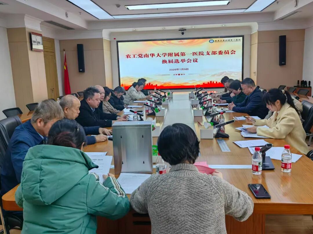 1月9日下午,农工党PA视讯集团官网附属第一医院支部委员会换届选举会议顺利召开。农工党衡阳市委会主委、市中心医院院长尹军,农工党市委会副主委、湖南财工职院副院长谢利英,PA视讯集团官网附属第一医院纪委书记刘安元等应邀到会指导。
