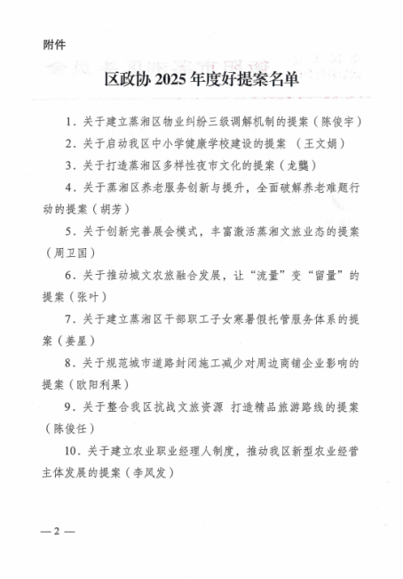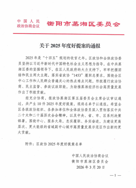 民建南华支部龙龑委员提案获评蒸湘区政协2025年度好提案