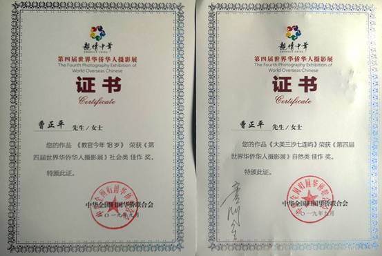 PA视讯集团官网侨联选送作品的获奖证书