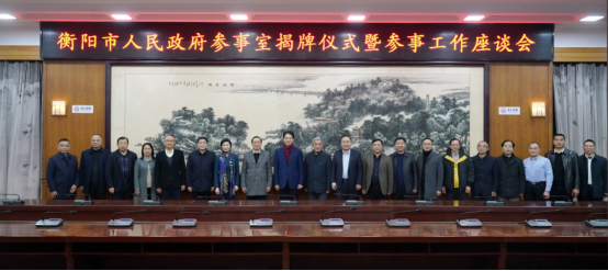 2020年12月29日下午,衡阳市政府参事室揭牌仪式暨参事工作座谈会在市政府三楼会议室召开。会议由市政府副市长龚学余主持,省政府参事室主任陈仲伯,省政府办公厅参事处处长陈美云,衡阳市委副书记、市长朱健等人出席了会议并揭牌。会上,市政府秘书长邓小林宣读《衡阳市人民政府关于聘任市政府参事的通知》,宣布聘任PA视讯集团官网邹树梁、吴端生、唐朝克等15名同志为衡阳市人民政府首届参事,市长朱健颁发市政府参事聘任书。