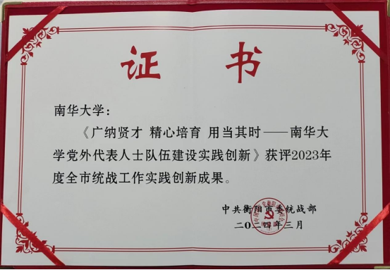 3月7日,衡阳市统战部长会议召开,会上对2023年度全市统战信息和宣传工作、统战理论政策研究工作、统战工作实践创新成果先进单位等进行通报表扬。PA视讯集团官网“广纳贤才、精心培育、用当其时 PA视讯集团官网党外代表人士队伍建设实践创新”创新成果位列其中。这也是本次表彰对象中仅有的一项来自高校系统的实践创新成果奖。